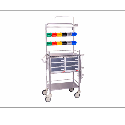 Complete with powder coated oxygen cylinder holder, cardiac massage board, SS IV pole