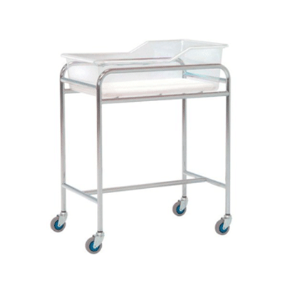 Baby Bassinet with fold down/drop down panels, head down position, on both side with X-ray facility. A big sheif at the bottom for keeping consumables.