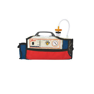 A compact battery operated Suction Unit in Mild Steel Housing with Shoulder Bag for use in Ambulances and Hospital Crash Carts.